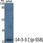 Phospho-14-3-3 Zeta (S58) Polyclonal Antibody detects endogenous levels of 14-3-3 Zeta protein only when phosphorylated at S58.