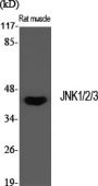 JNK1/2/3 Polyclonal Antibody detects endogenous levels of JNK1/2/3 protein.