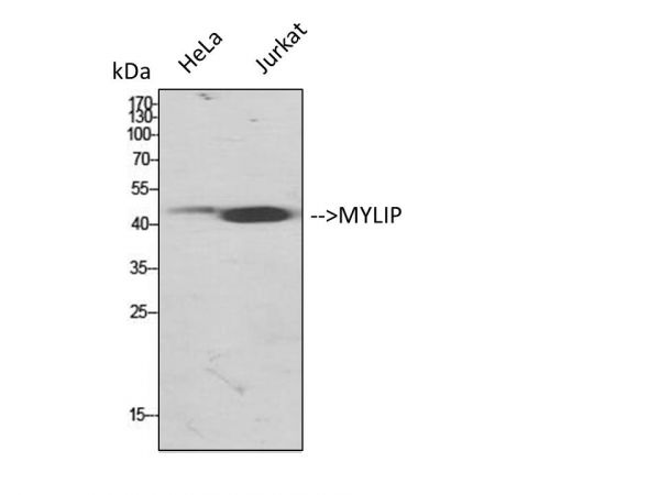 MYLIP Polyclonal Antibody detects endogenous levels of MYLIP protein.