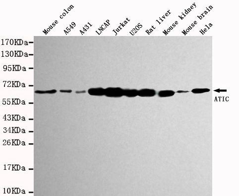 This antibody detects endogenous levels of ATIC and does not cross-react with related proteins.