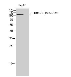 Phospho-HDAC5/9 (S259/220) Polyclonal Antibody detects endogenous levels of HDAC5/9 protein only when phosphorylated at S259/220.