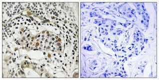 The antiserum was produced against synthesized peptide derived from the human HBP1 around the phosphorylation site of Ser402 at the amino acid range 371-420