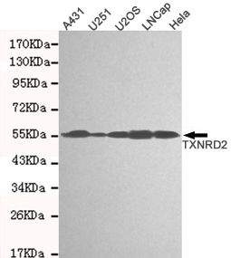 This antibody detects endogenous levels of TXNRD2 and does not cross-react with related proteins.