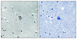 The antiserum was produced against synthesized peptide derived from mouse KOR-1 around the phosphorylation site of Ser369 at the amino acid range 331-380