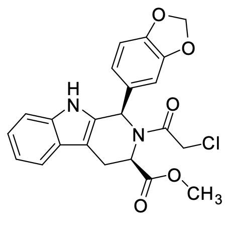 Smiles COC(=O)[C@H]1CC2=C([C@@H](C3=CC4=C(C=C3)OCO4)N1C(=O)CCl)NC5=CC=CC=C25